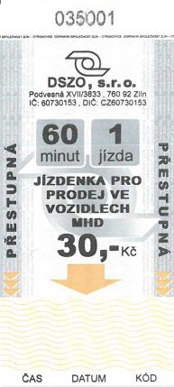 | pro jednu jízdu (nákup u řidiče) | 30,- Kč |