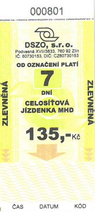 Platí pro:- cestující od 15 let včetně, kteří nemají právo na bezplatnou přepravu nebo slevu v MHD